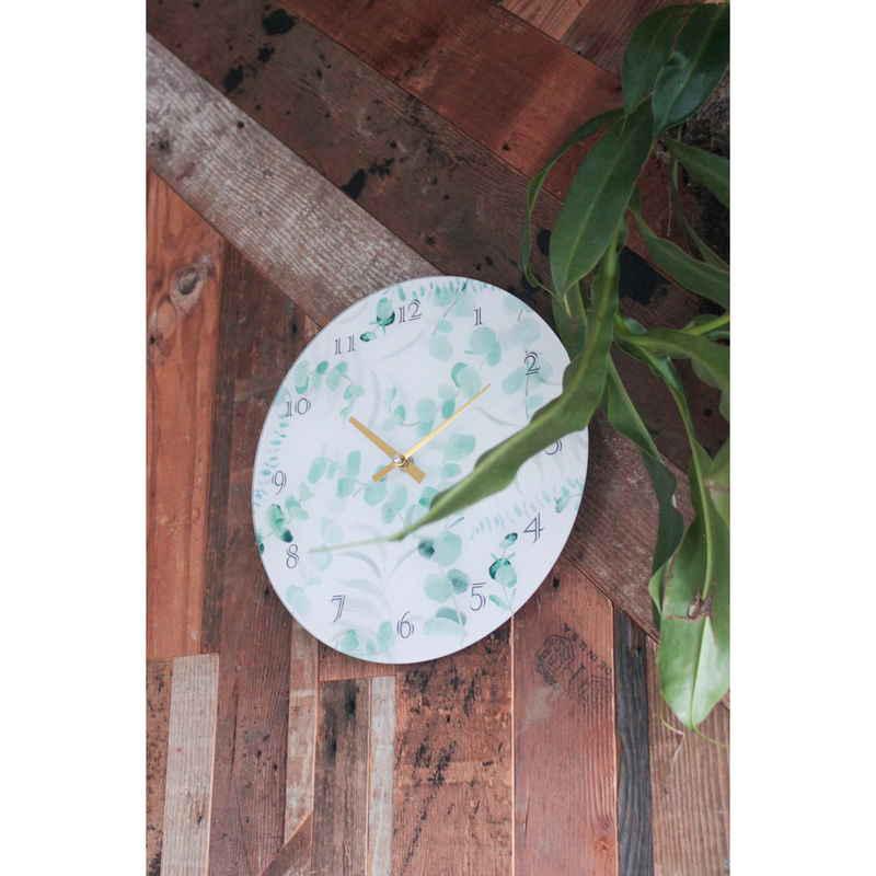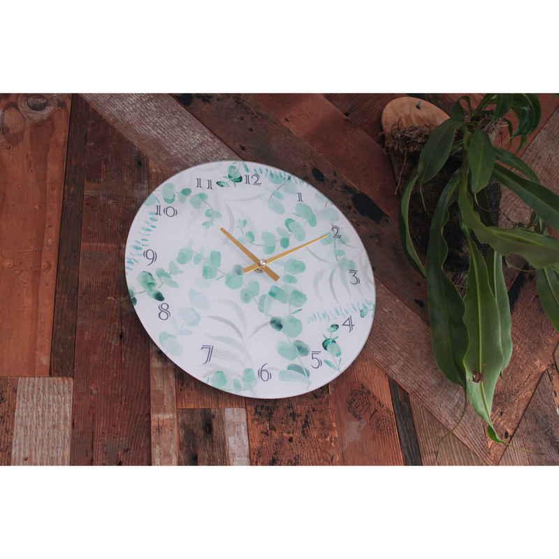 キーストーン 掛け時計 ボタニカルガラスウォールクロック 直径30cm 電池式 ユーカリ