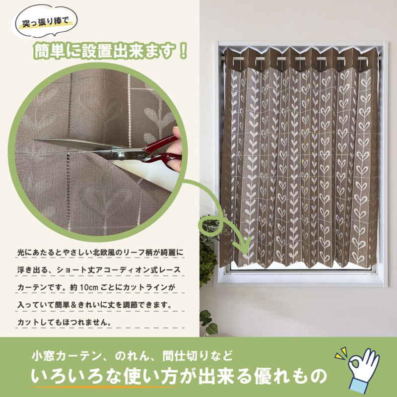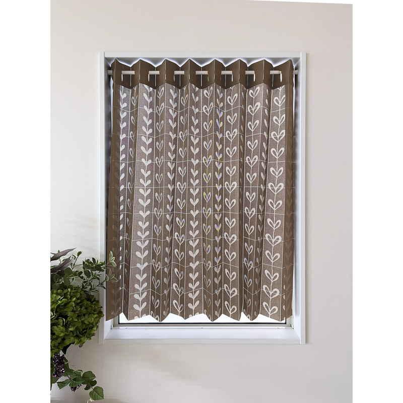 加栄レース アコーディオンカーテン リーフ柄 フリーカット 150×100cm ブラウン