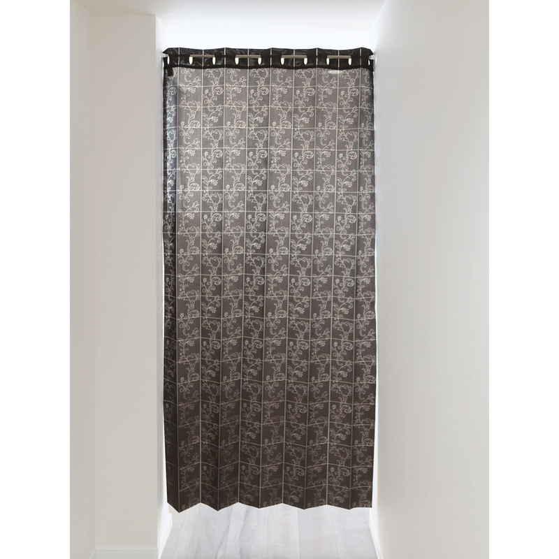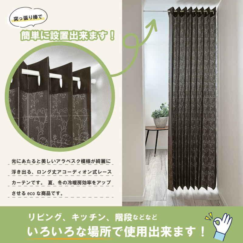 加栄レース アコーディオンカーテン アラベスク柄 フリーカット 100×250cm UVカット ダークブラウン