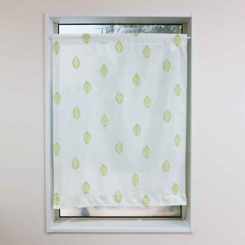 葉っぱ柄がアクセントの多機能な小窓カーテンです。