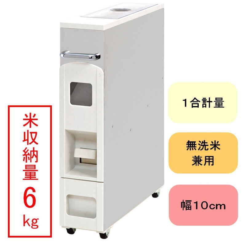 容量:米収納量/約6kg 受皿容量/約4合 計量方式/1合