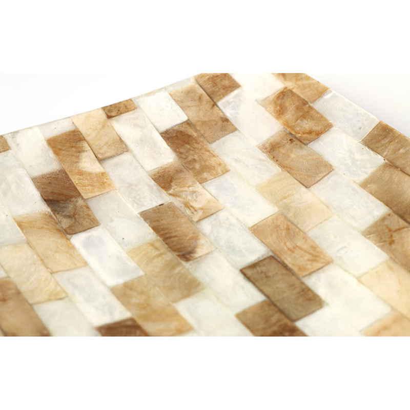 光沢のあるシェルを薄く削りあしらったトレイです。