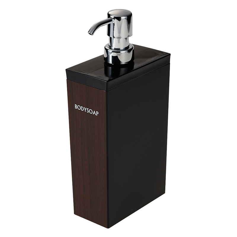 自然に溶け込む木目調ディスペンサー ボディソープボトル 長角型 フタが外せて詰め替えが簡単 シリーズで揃えて統一感のある空間へ スタンダードなプッシュポンプ式 お手入れ簡単