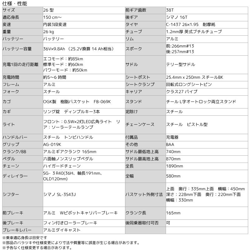 【店頭受取限定】 あさひ 電動アシスト自転車 大人用 26インチ 内装3段変速 エナシスミー(ENERSYS Me)-N GR