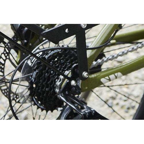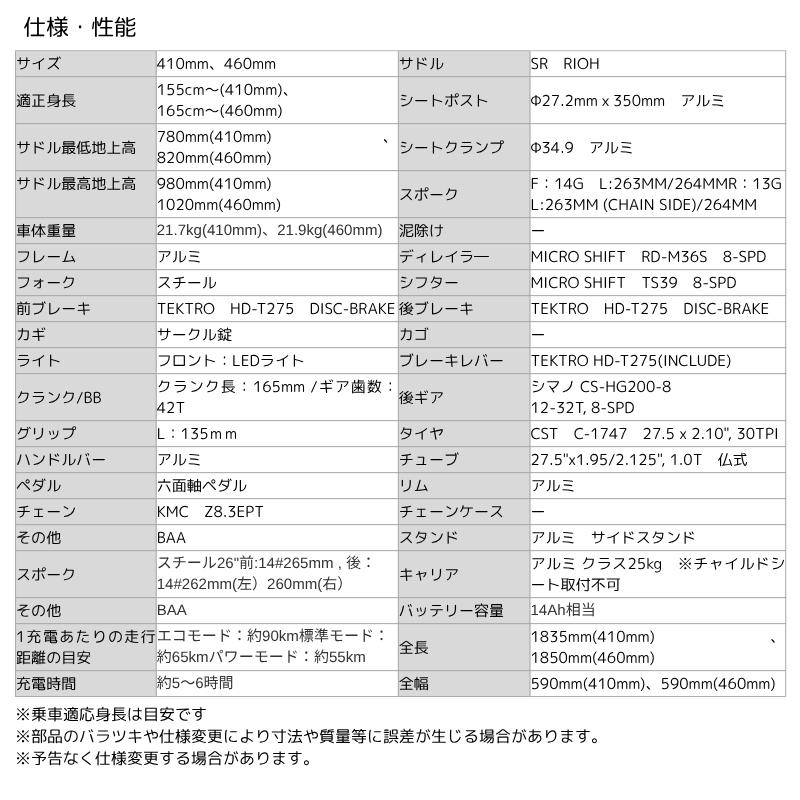 ・油圧式ディスクブレーキ、8段変速、ブロックタイヤ、前照灯を装備し、多様なシーンに対応。