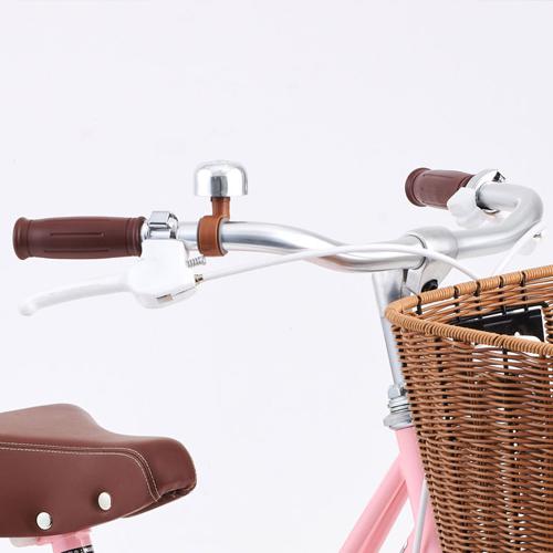 ・鋲をあしらったレザー調サドルは持ち手を標準装備、保護者の方がお子様の自転車を持って運ぶ際や後ろから支える際に便利です。手押し棒との併用も可能です。