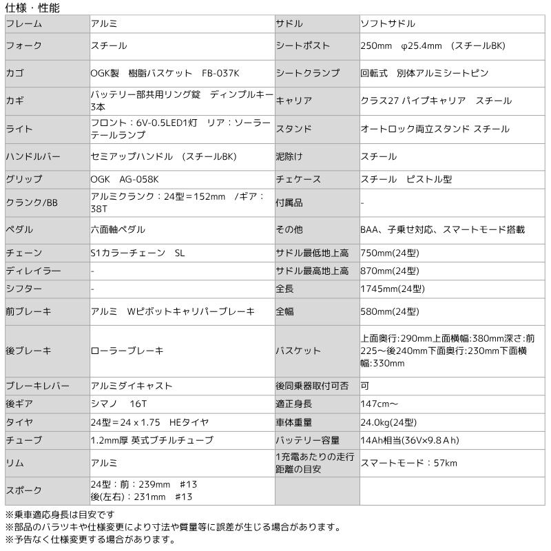 【店頭受取限定】 あさひ 電動アシスト自転車 大人用 24インチ オートライト 変速なし エナシスユー(ENERSYS U)-P チャコール