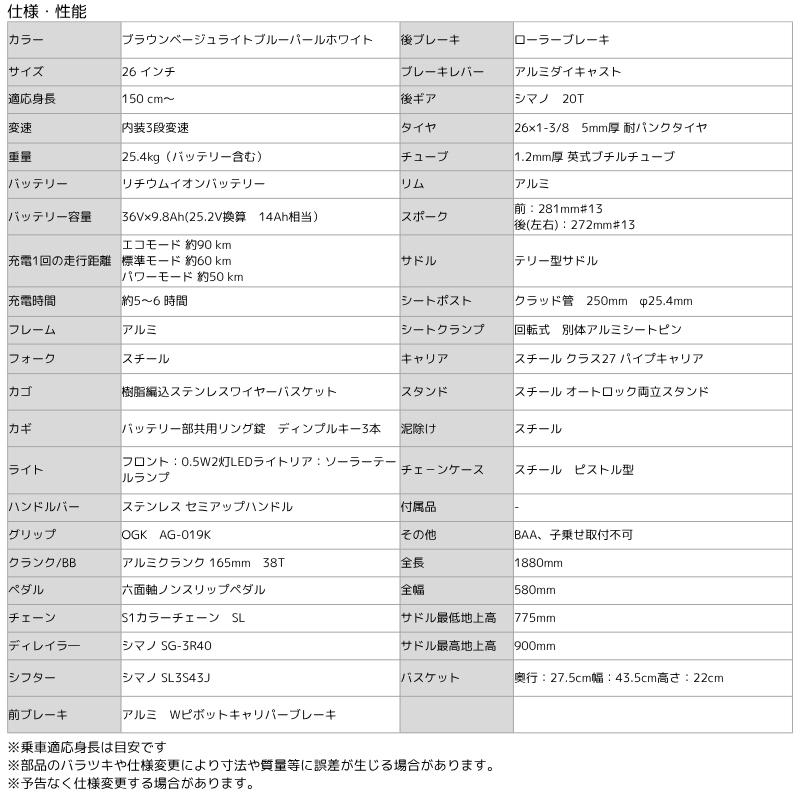 【店頭受取限定】 あさひ 電動アシスト自転車 大人用 26インチ 3段変速 エナシスメルティENERSYS MELTY)-P ライトブルー