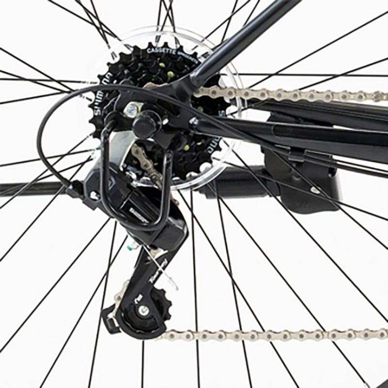 ・基本SPECは、BAA対応、バッテリーライト標準装備、タイヤサイズは27.5×2.1、外装7段変速、前後Vブレーキ、スチールフレームです。