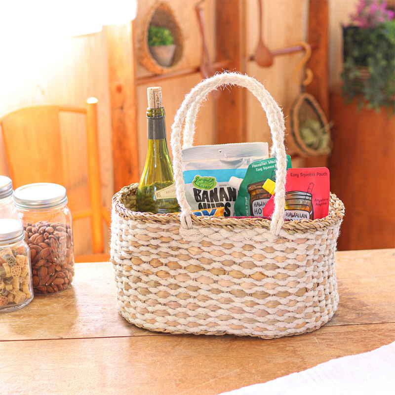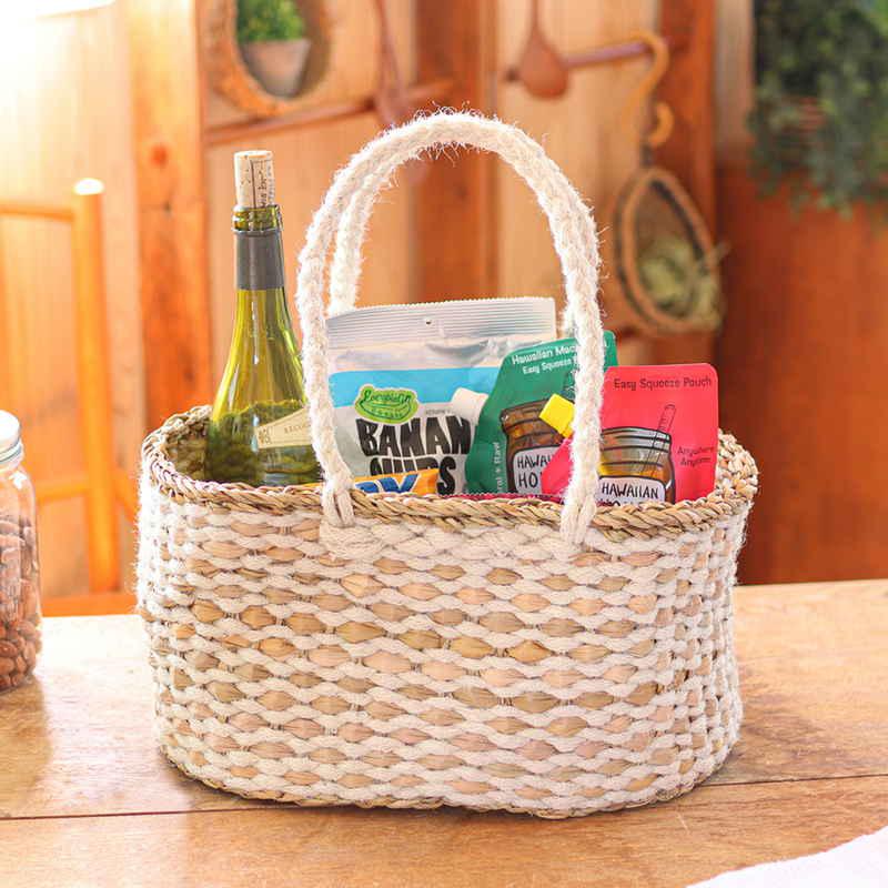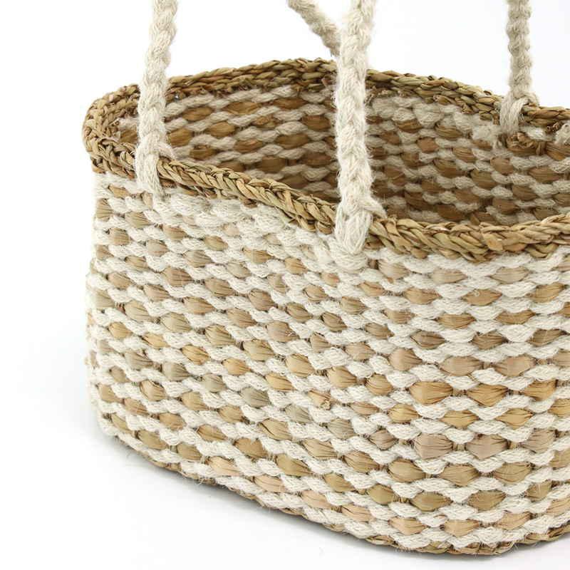 ジュートとシーグラスのコンビネーションが魅力的なバスケットです。