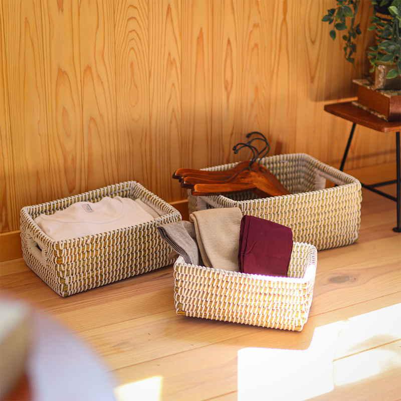 丈夫で長持ちするシーグラス素材のバスケットです。