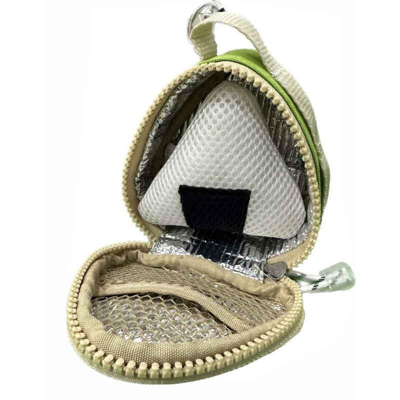内側はアルミ蒸着素材を使用しており、保冷剤と併用することで傷みやすいおにりぎも安心して持ち歩けます。