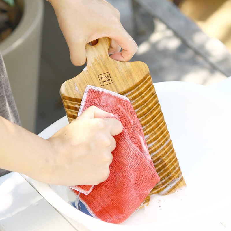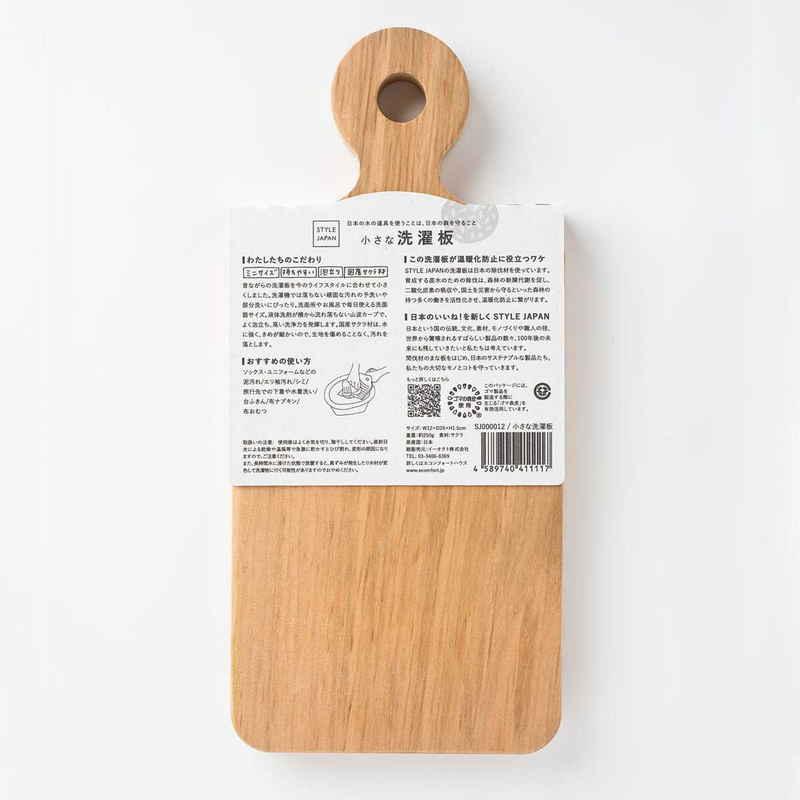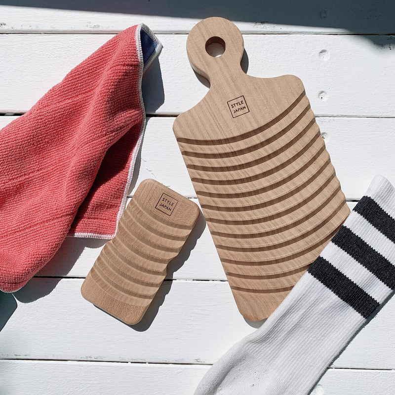 頑固な汚れの予洗いや部分洗いにぴったり 洗面器サイズの小さな洗濯板 しっかりと握れる持ち手 国産のサクラの木を使用 2サイズ展開でお好みのサイズを