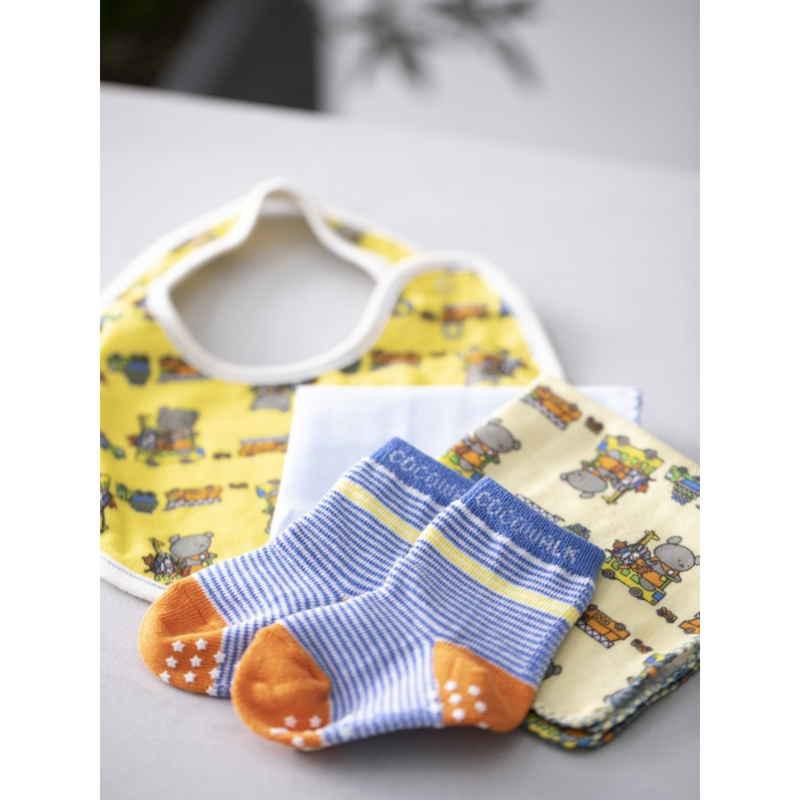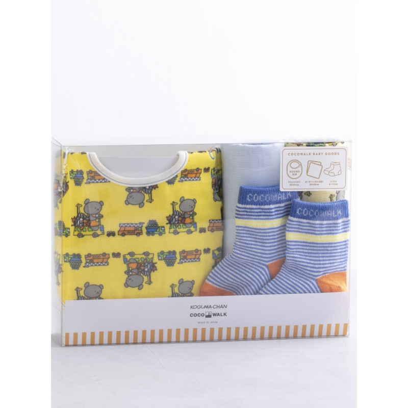 ウェーブ ギフトセット こぐまちゃん ソックスギフトBOX スタイ ハンカチ 2枚 靴下 出産祝い イエロー