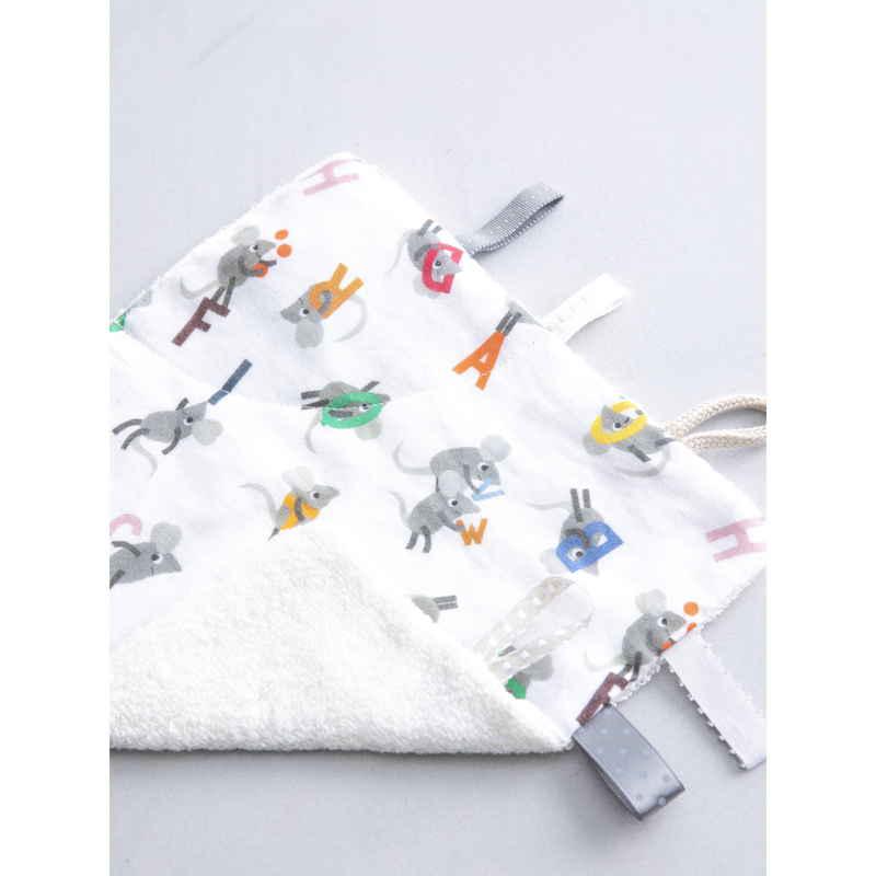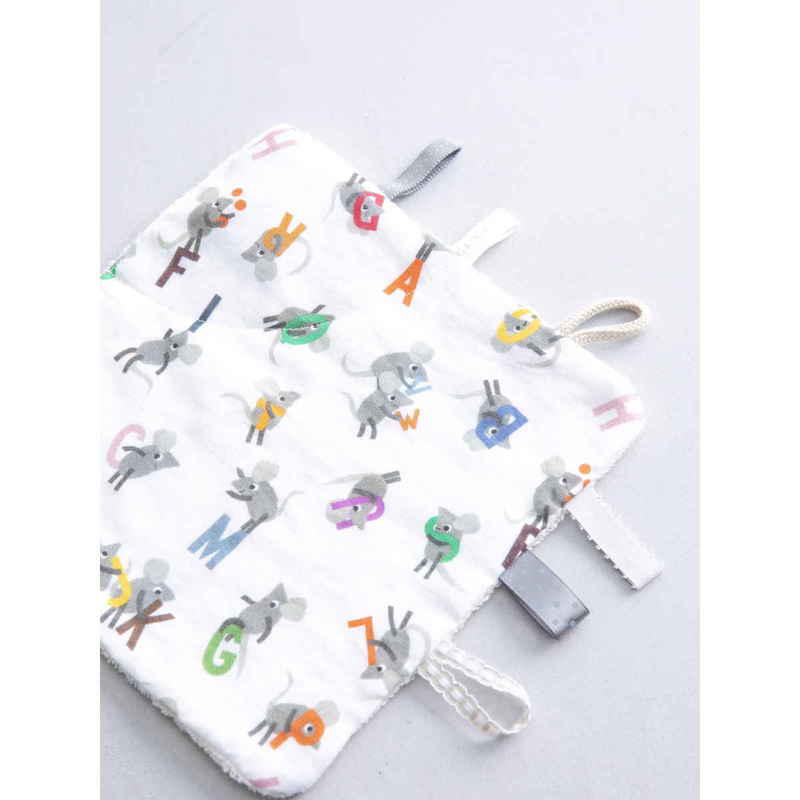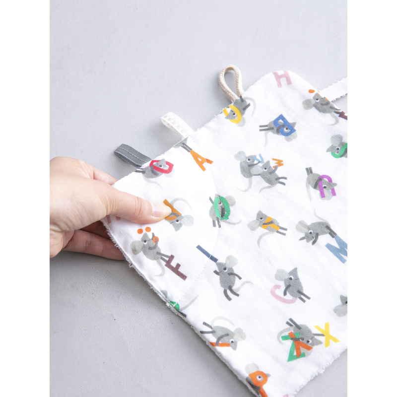 おもちゃのように赤ちゃんが楽しめるハンカチです。