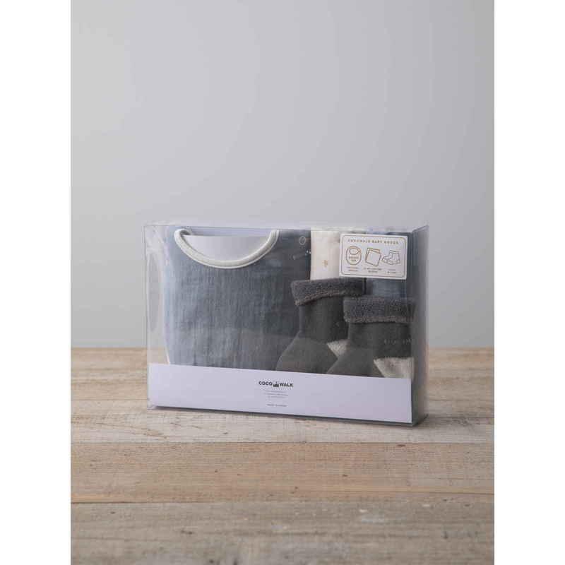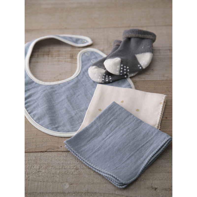 ウェーブ ギフトセット ソックスギフトBOX やさしいガーゼ 出産祝い サックス
