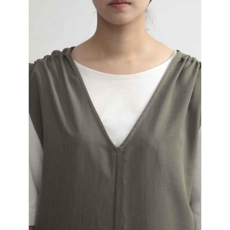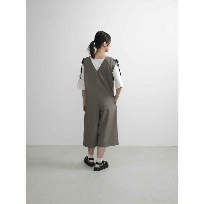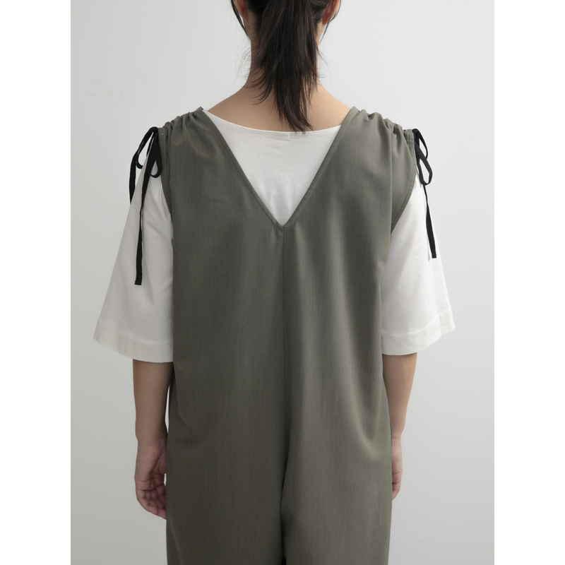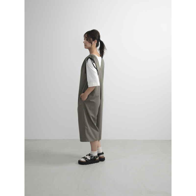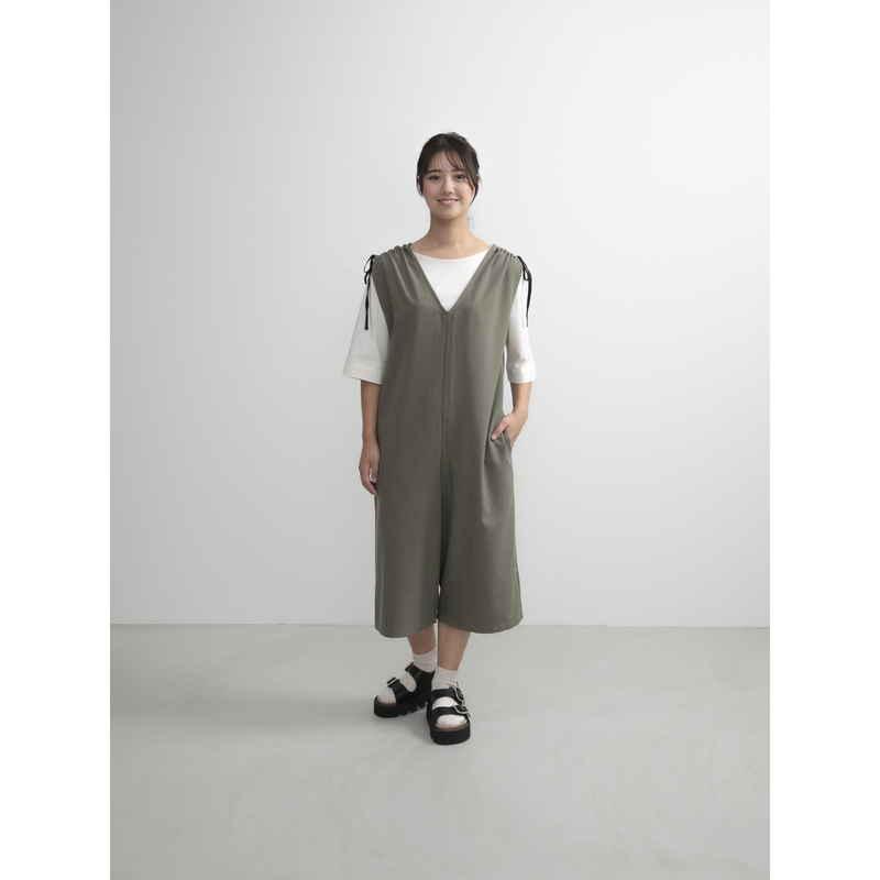 ウェーブ エプロン 無地 肩ギャザーオールインワン COCOWALK カーキ