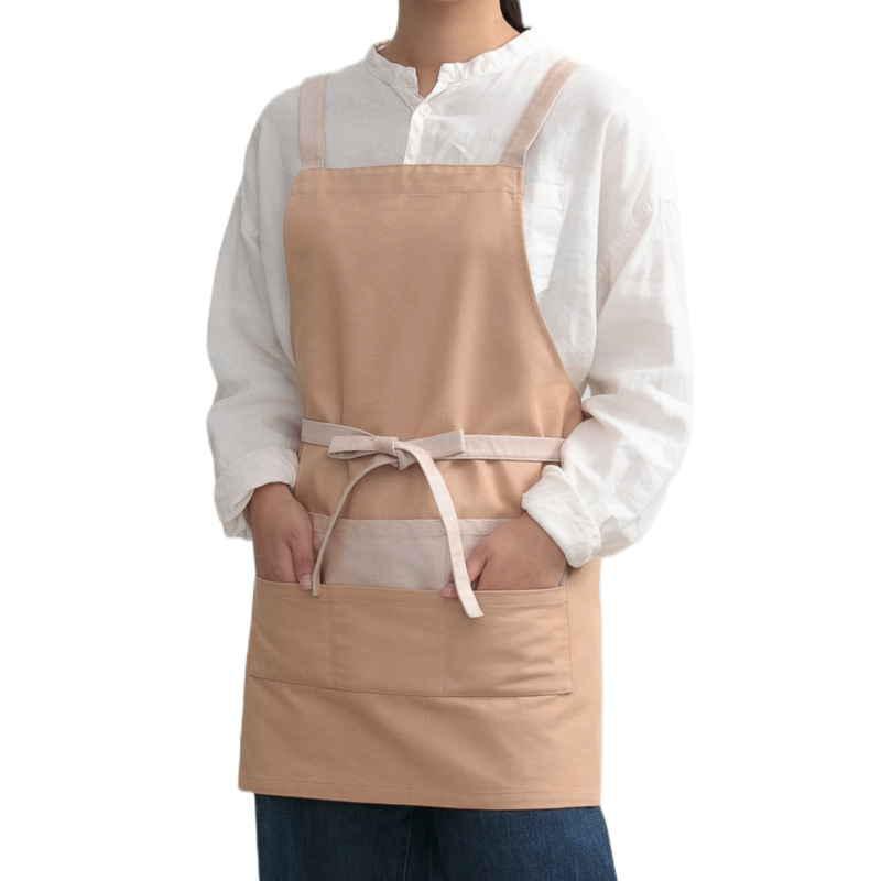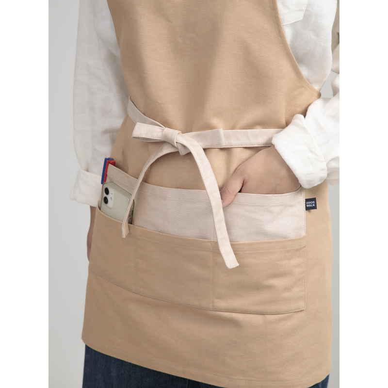 ウェーブ エプロン 無地 しっかりお尻が隠れるラップエプロン COCOWALK ベージュ