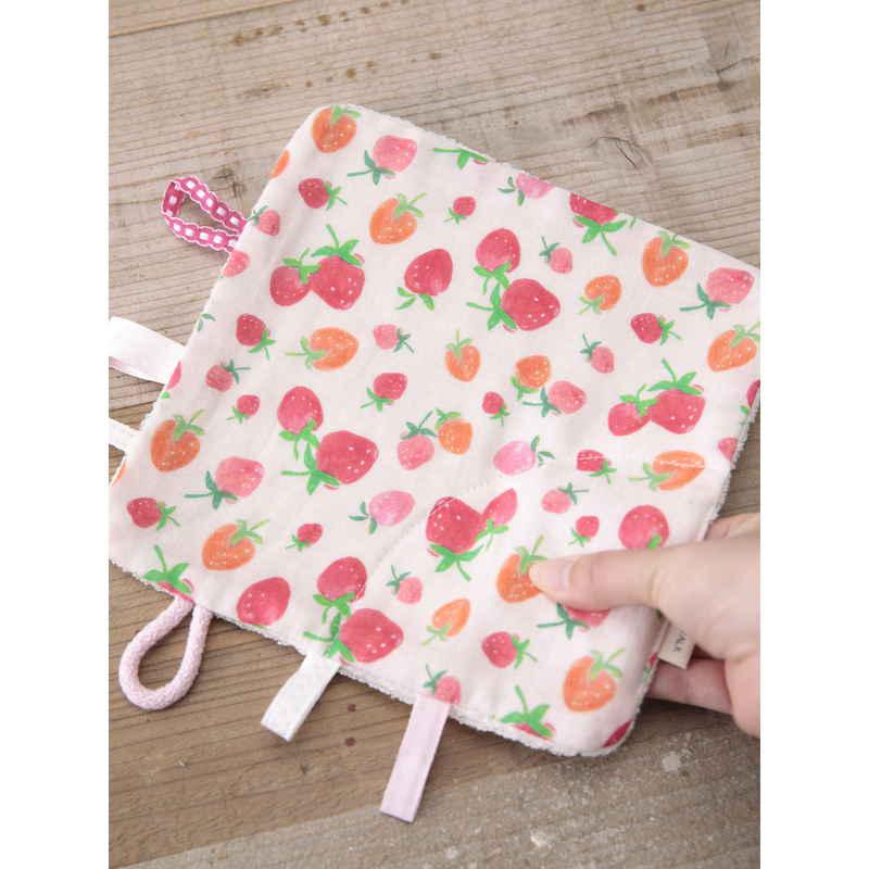 ウェーブ おもちゃ ベビー にぎにぎ ハンカチ くだもの 日本製 知育 イチゴ