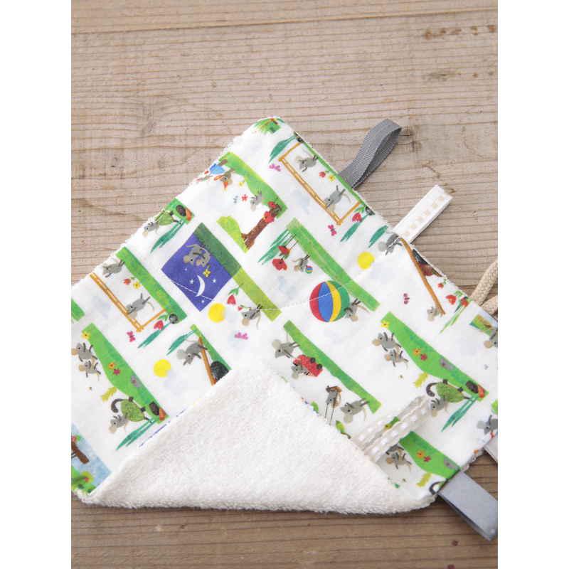 おもちゃのように赤ちゃんが楽しめるハンカチです。