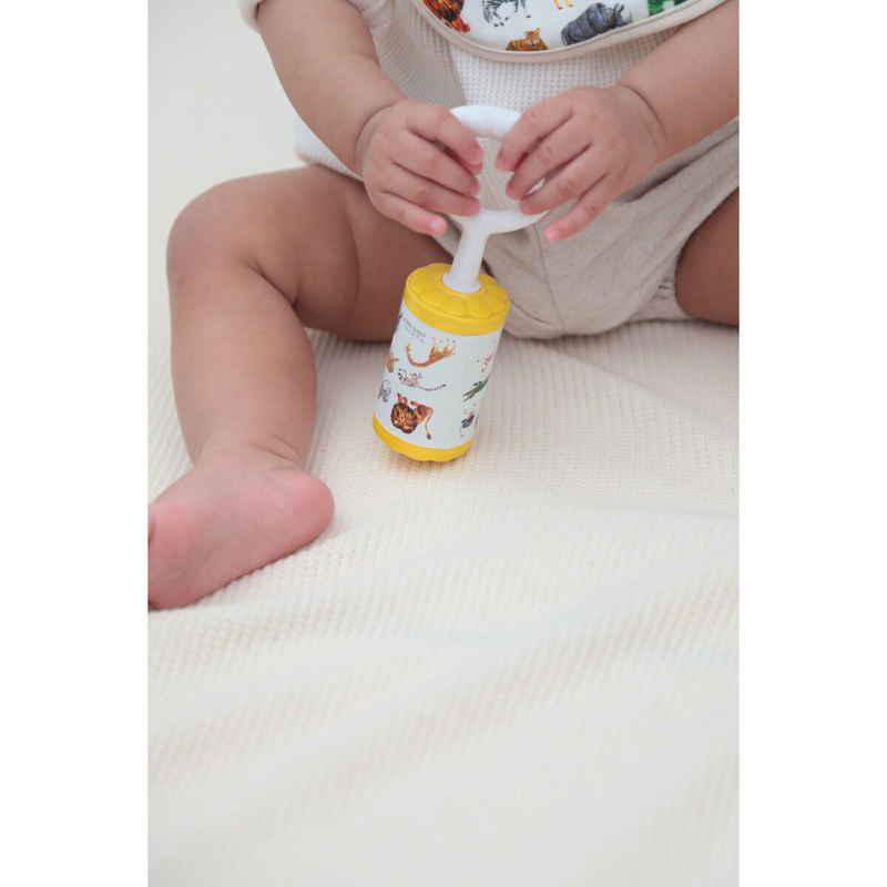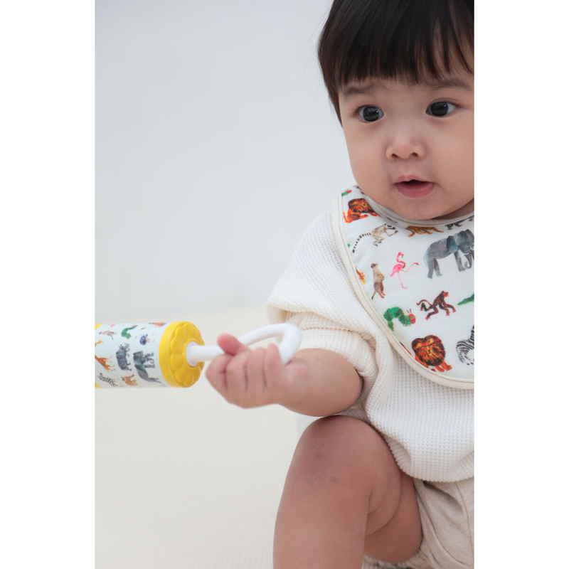 人気絵本「はらぺこあおむし」のデザインが可愛い優しい音色のガラガラです。