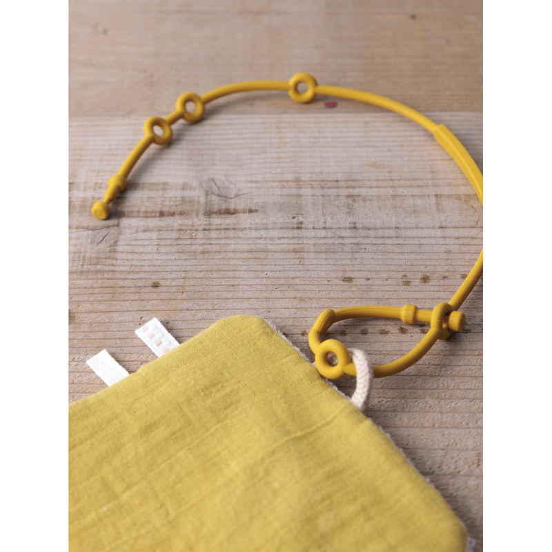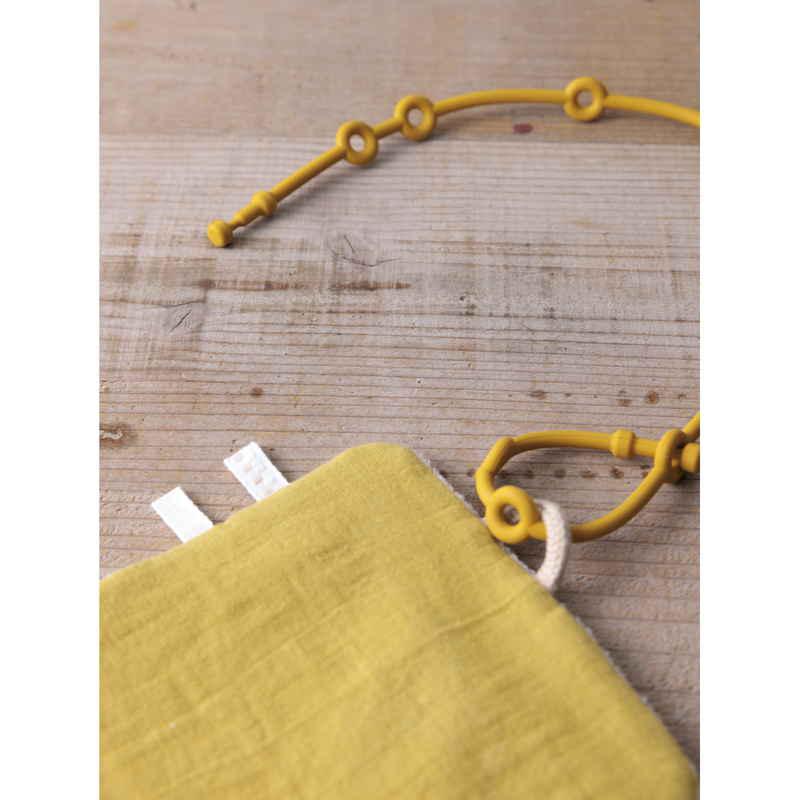 ウェーブ ベビー ニギニギハンカチ シリコンストラップ付き おもちゃ 落下防止 日本製 ベビーカー やさしいガーゼ イエロー