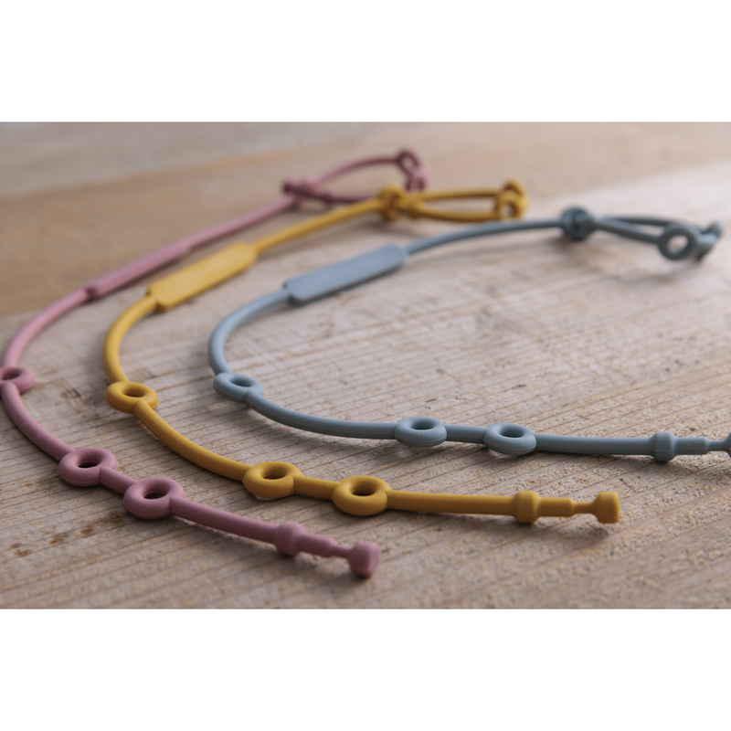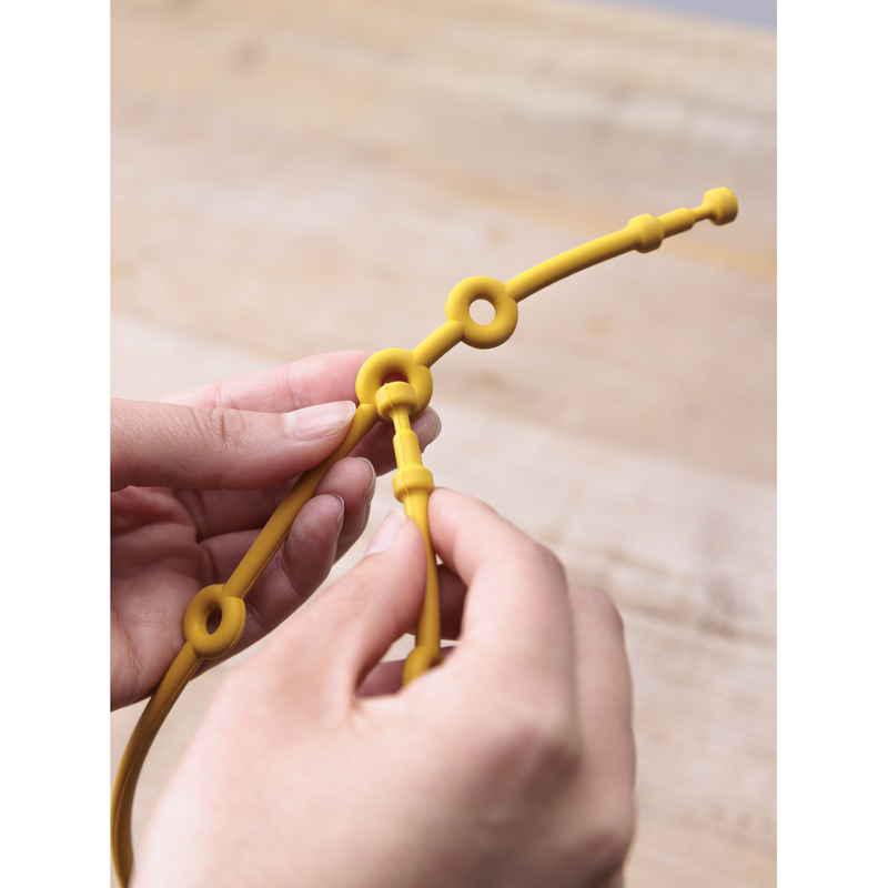 シリコンストラップはサイズ調節できるので、マグやおもちゃなどをベビーカーに取り付けできます。