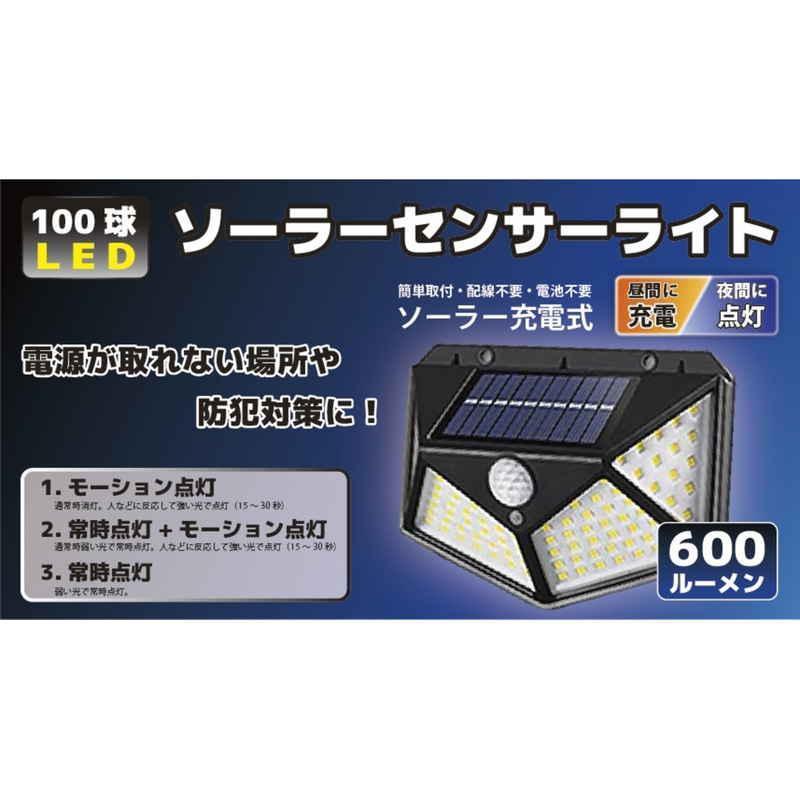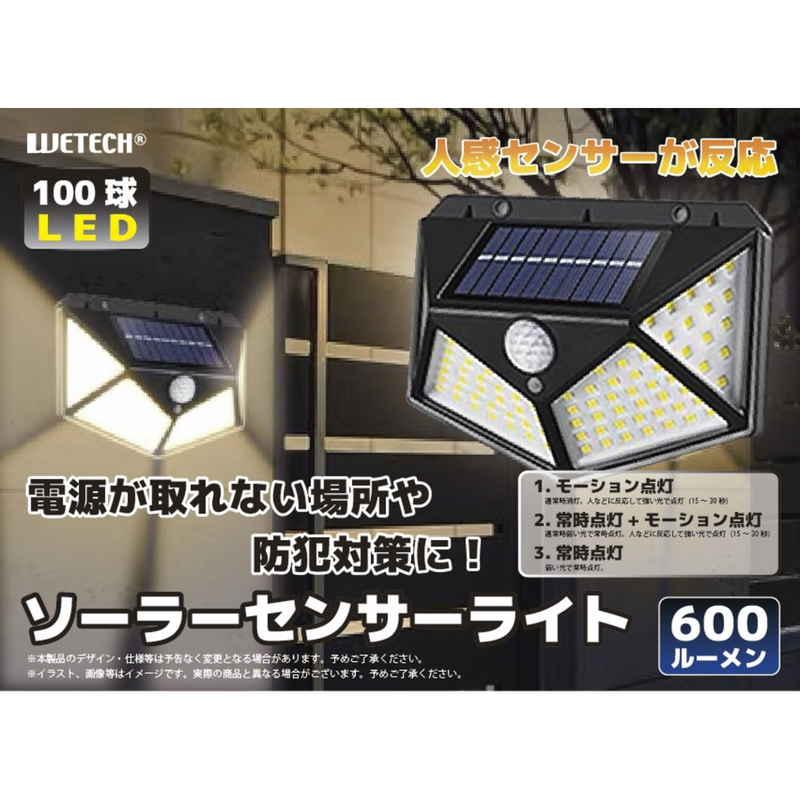 ウィキャン ソーラーライト 100球 ソーラー センサーライト 人感センサー 明暗センサー 600ルーメン
