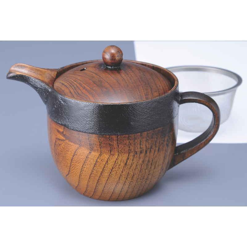 天然木で作られ漆塗りされた布貼り木製急須210mlです。
