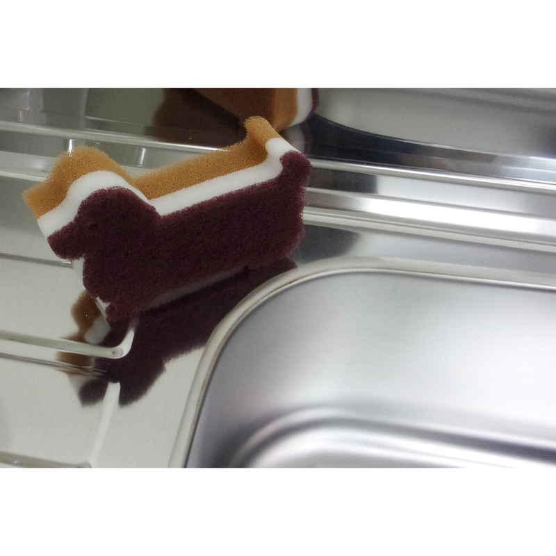 かわいくて実用的なダックスフント型のハードタイプキッチンスポンジです。