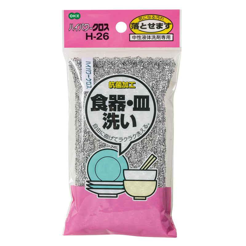 プラスチック、ガラス、ホーロー、陶磁器、樹脂加工品、ステンレスなどの食器・調理器具の洗いに使えるハイパワークロスです。