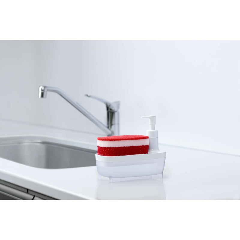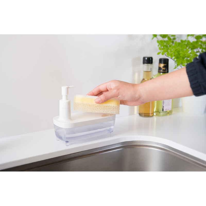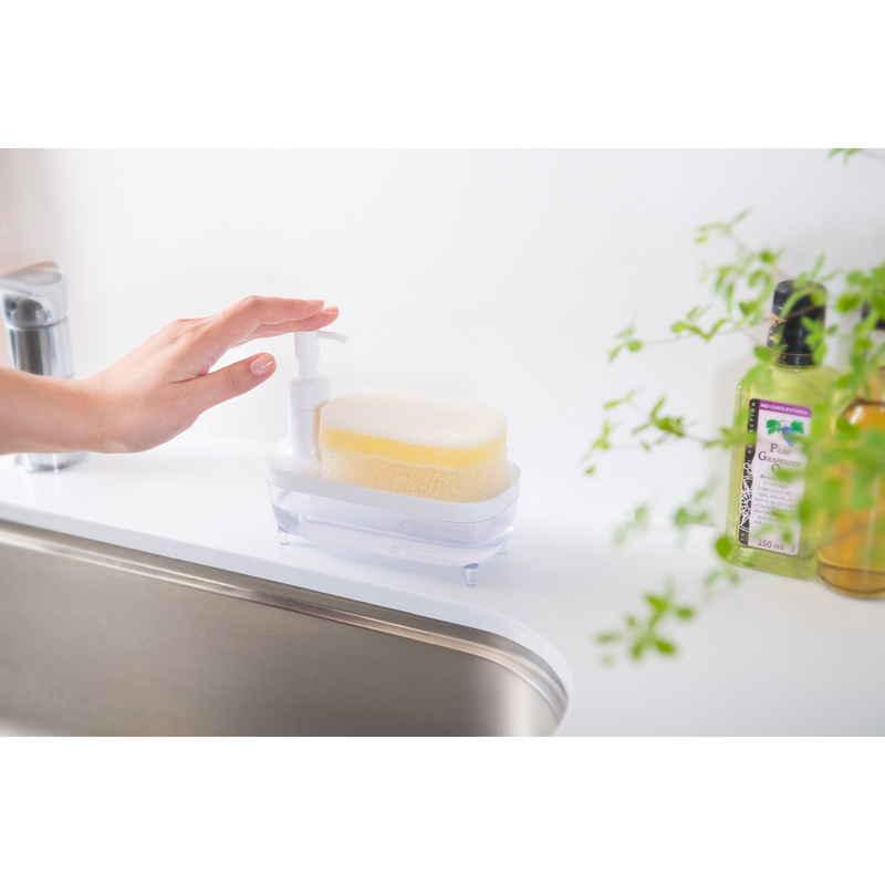 ディスペンサーとスポンジトレーが一体となっているので場所をとらず、片手でスポンジに洗剤をつけることができます。