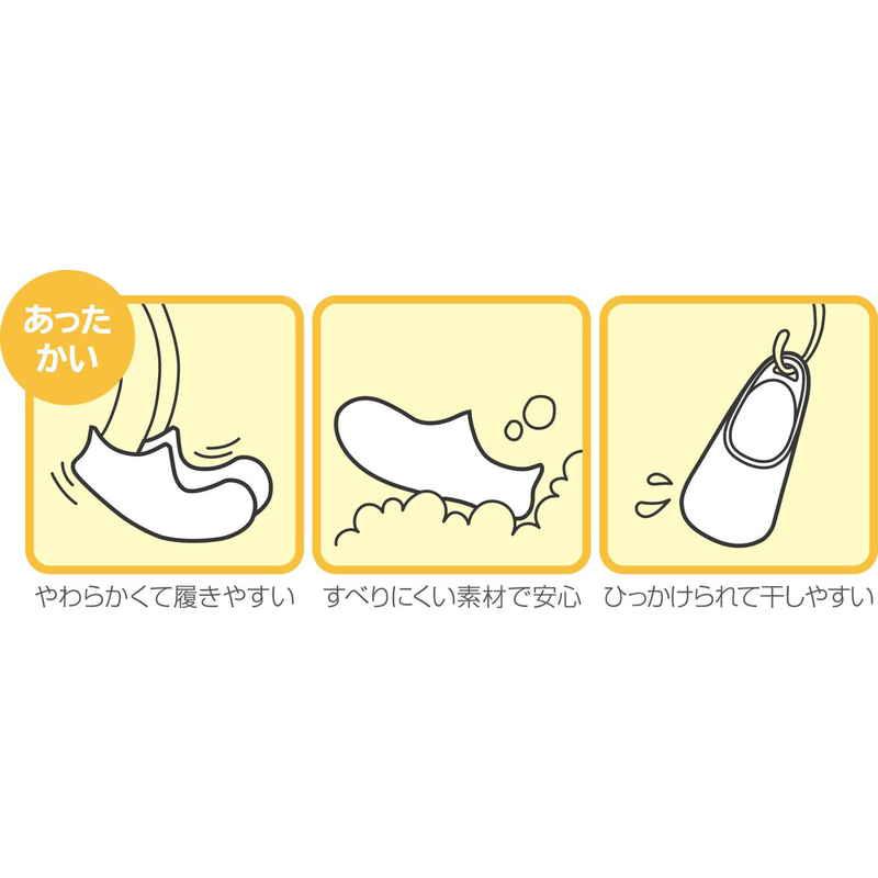 くり抜いたようなほっこりしたシルエットが可愛らしい、バスシューズです すべりにくい素材なので安心です お風呂マットでも使用されているEVA樹脂を使用しているので、やわらかく足を包み込んでくれます あたたかいので、寒い時期は特に大活躍します すっぽりと包むような、足が濡れにくいデザインです みぎひだりがなく、スポッと履けるフリーサイズです(24〜26cm対応) かかと部分にフック穴があるので、使わない時はフックにかけて収納したり、ひっかけて干すことができます