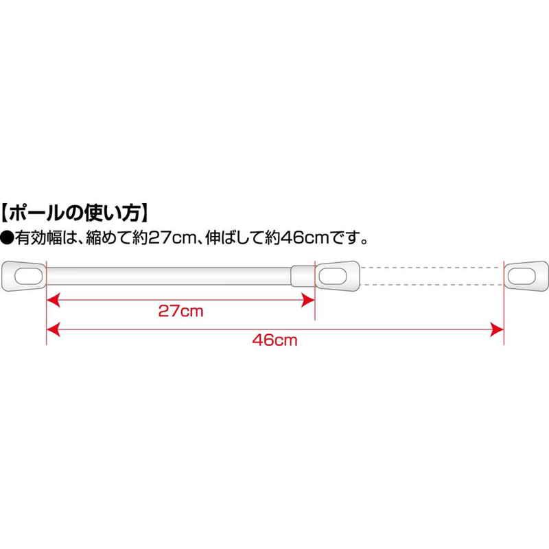 ポールの有効幅は、縮めて約27cm、伸ばして約46cmです。