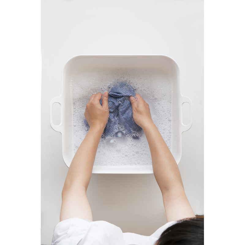 つけ置き洗い、靴洗いなどのちょっと洗いに便利なタライです。