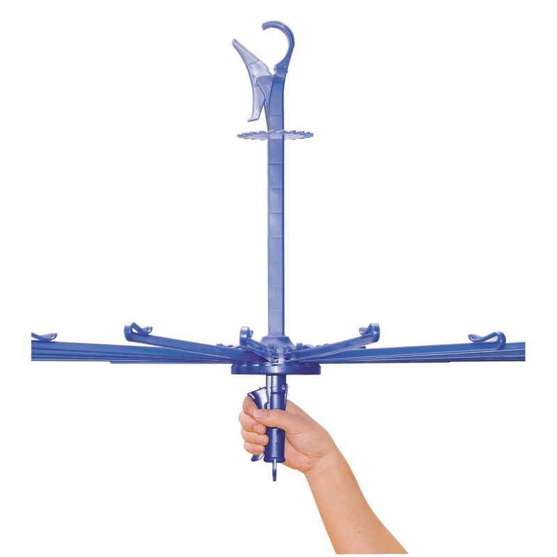 手元の操作でフックがラクに開閉できるので、高い位置の竿へもラクに掛けられます。