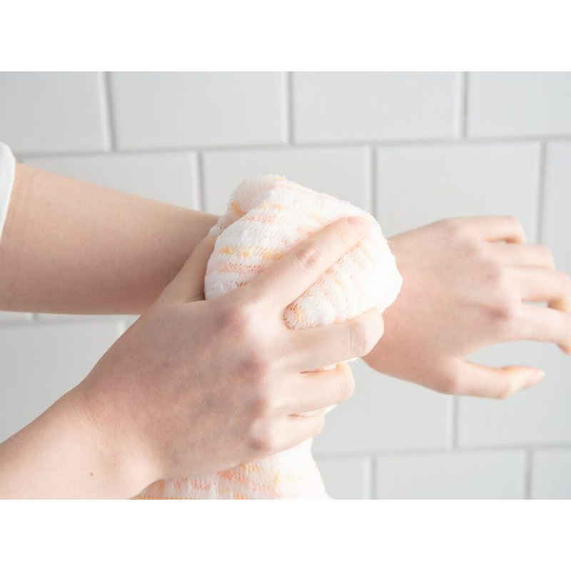 クリームのような泡ともちっとした感触が心地よいボディタオルです。