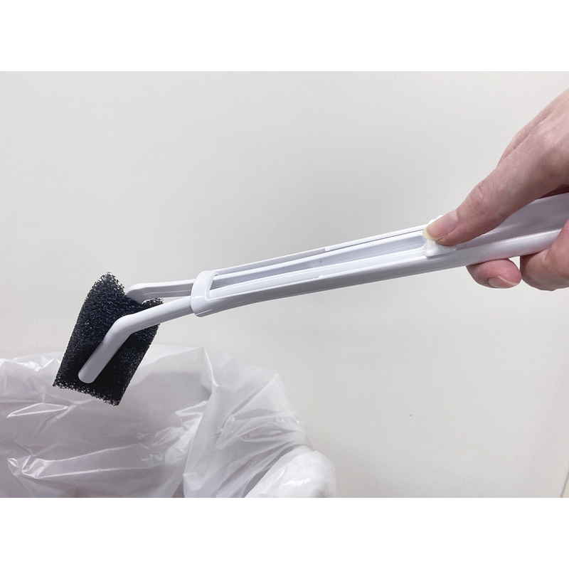 柄をスライドさせるとスポンジが外れて、簡単にスポンジの交換ができます。