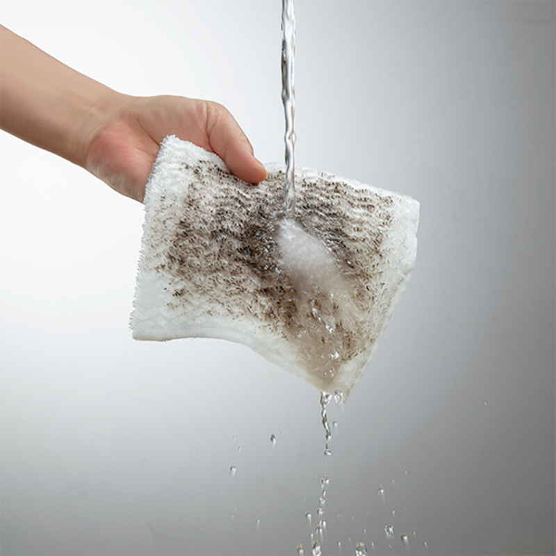 水に濡らしてやさしく拭くだけで、細かな汚れまでしっかり落とします。