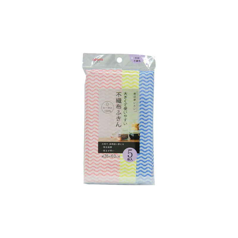 大判で多用途に使える不織布ふきん5枚入りです。