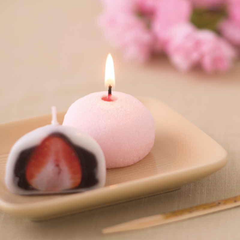 見た目も可愛いいちご大福の形をしたキャンドルです。