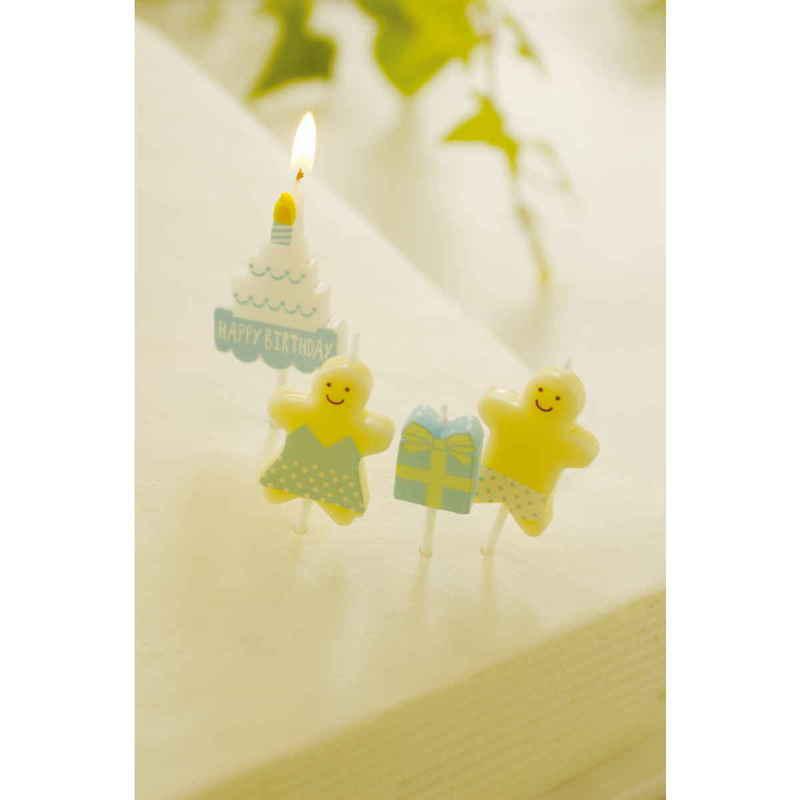 マスコットとケーキ、プレゼントの形がセットになったキャンドルです。