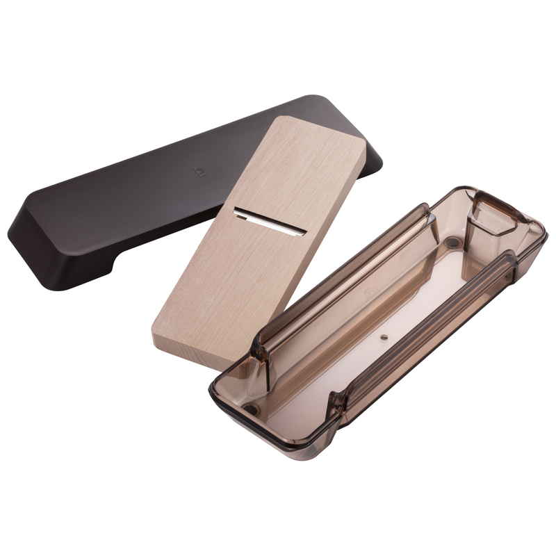 材質:刃部/刃物鋼 台/天然木 カバー/ポリプロピレン 受け皿/AS樹脂 すべり止め/ポリウレタン