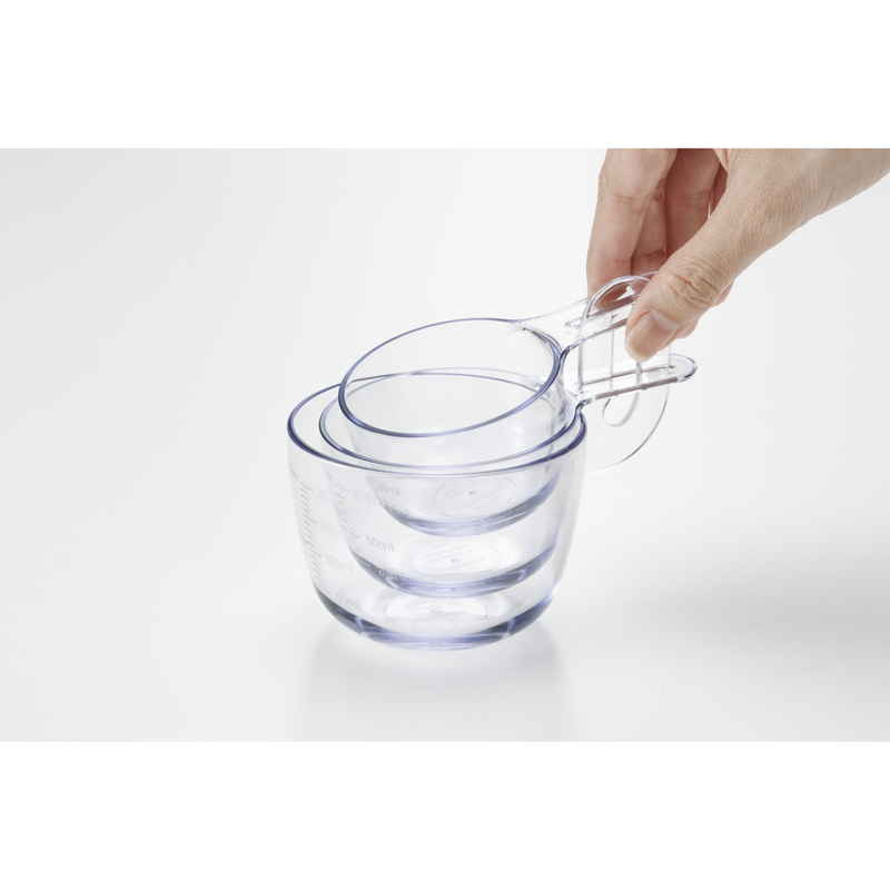 商品サイズ:60mlカップ:縦65×横65×深さ42mm 100mlカップ:縦74×横74×深さ48mm 200mlカップ:縦85×横85×深さ63mm 小さじ/縦32×横32×深さ15mm 大さじ/縦42×横42×深さ22mm
