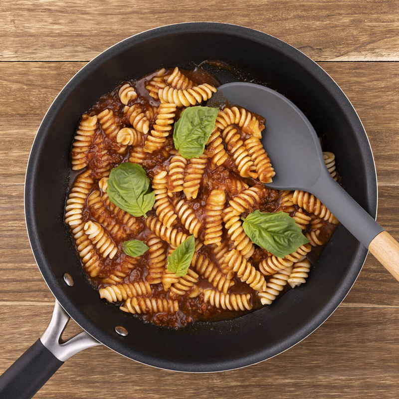 鍋やフライパンを傷つけにくい、シリコーン製の調理スプーンです。
