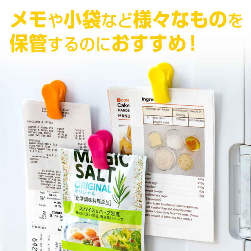 冷蔵庫などに取り付けられる、かわいいマグネット付きのキッチンクリップです。