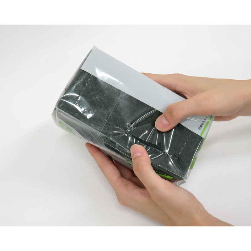 背面の点線に沿って開封すると、キッチンの引出しに収納した時に上から取り出しやすいです。