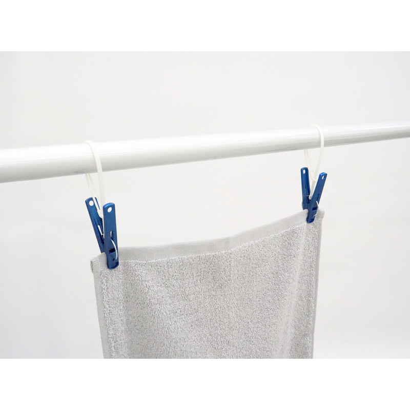 物干し竿や洗濯ロープに取り付けられる便利なヒモ付きのピンチ10個入です。