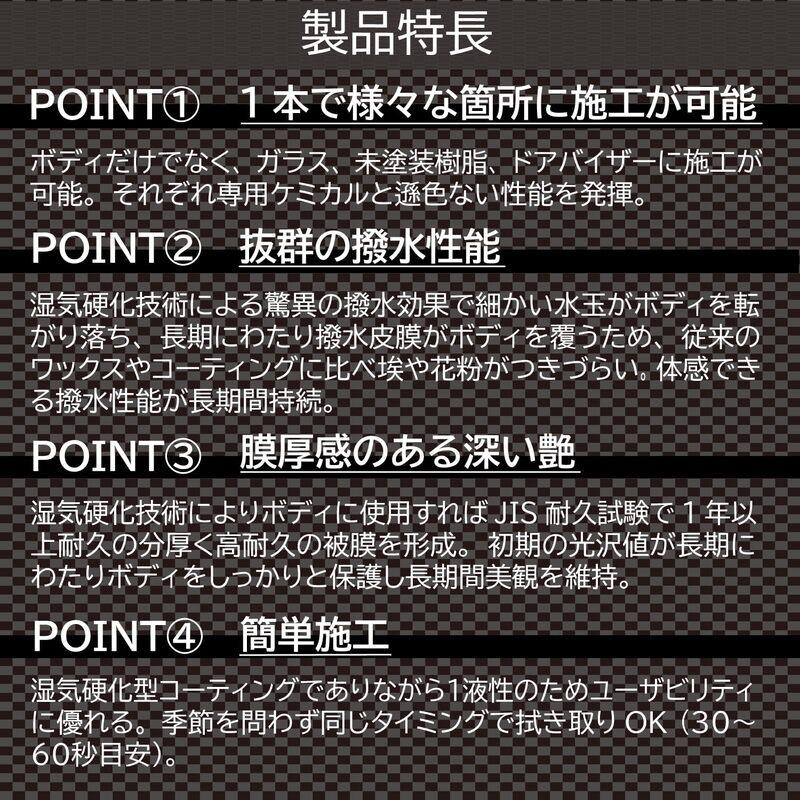 それぞれの部位において専用品と遜色ない性能を発揮し本製品1本で愛車の外装を保護することが可能
