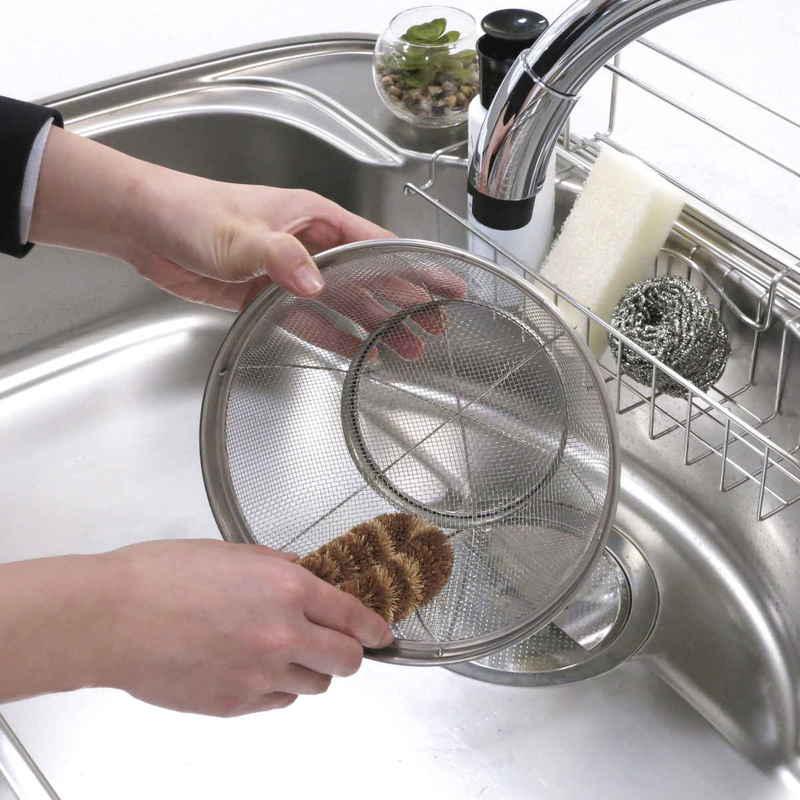 木製品などの凹凸面やザルの目詰まりもスッキリきれいに洗えます。